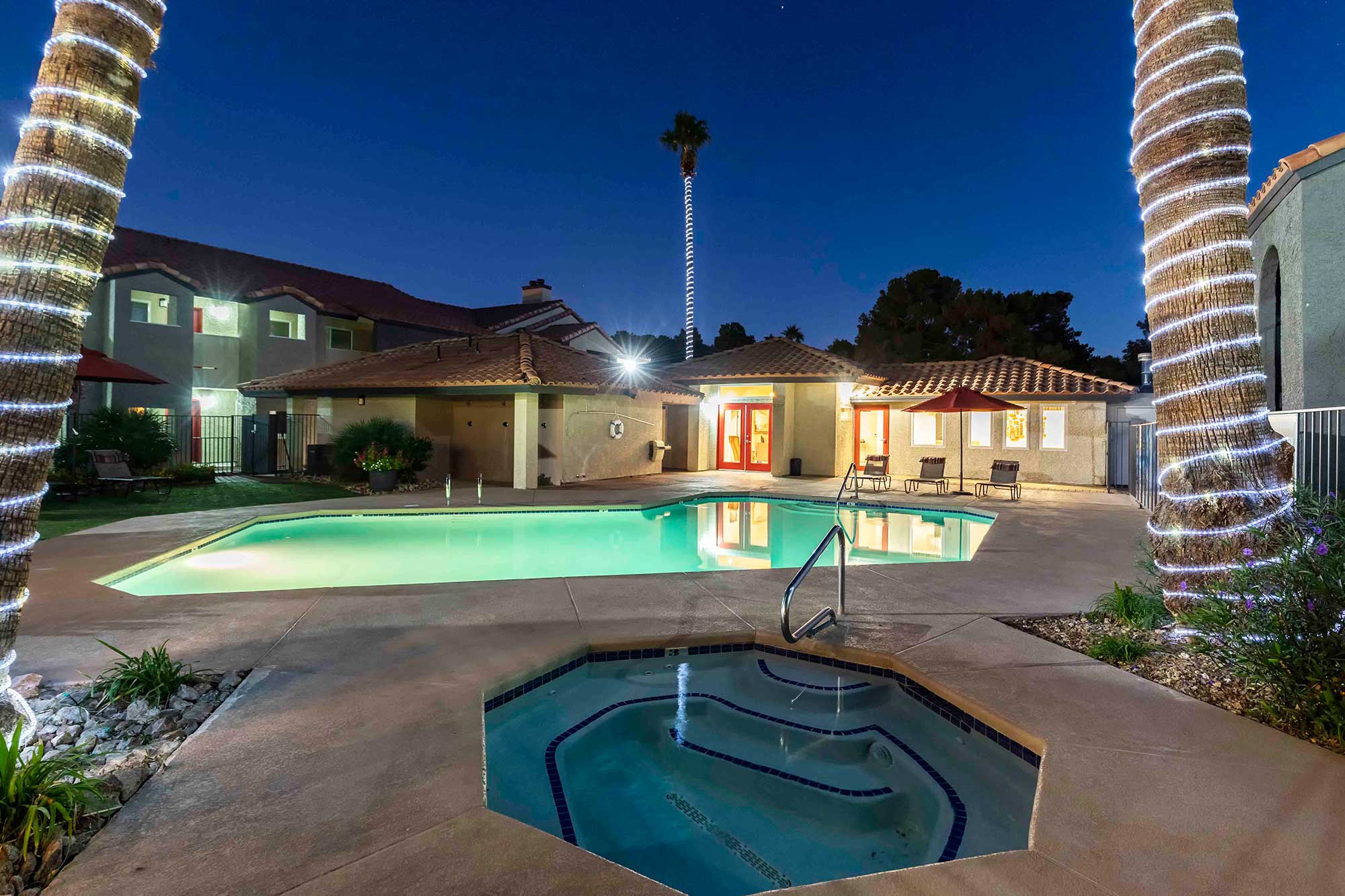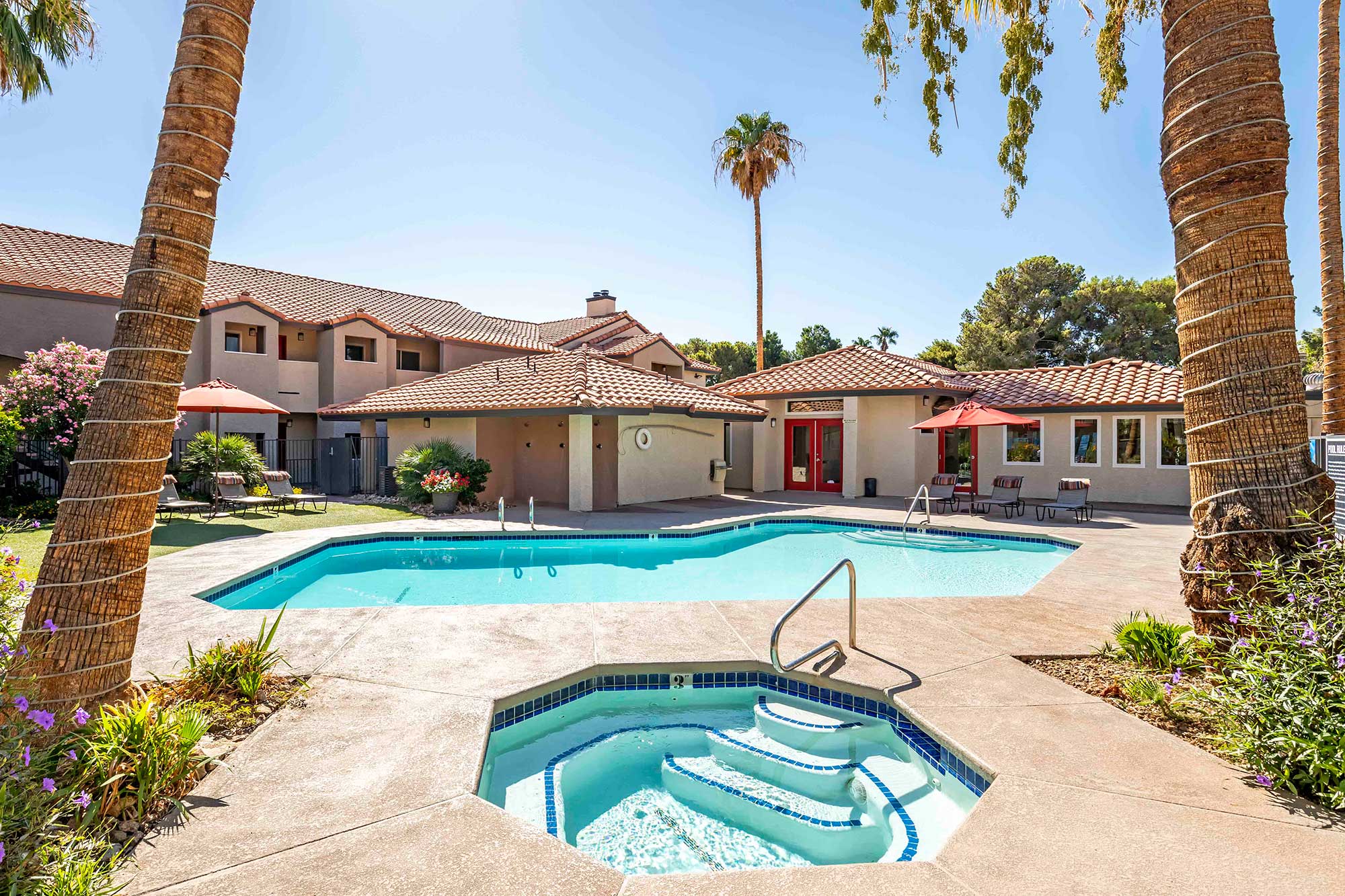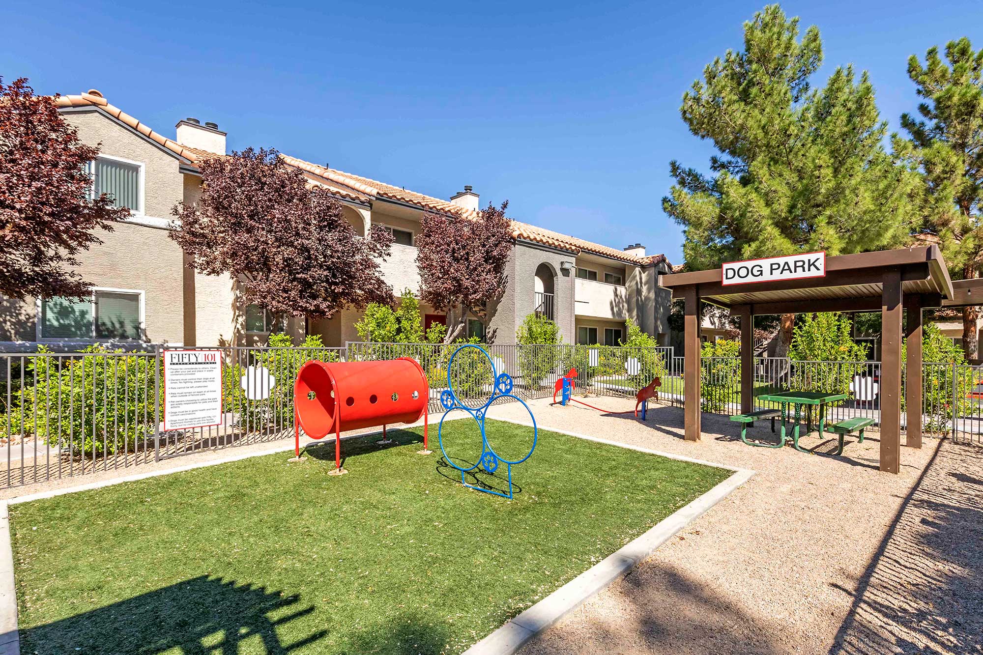 Fifty 101 Apartments: Beautiful inside and out. Come home to a relaxing oasis, surrounded by beautiful landscaping and tall palm trees. Designed for every lifestyle...from the fitness lovers who will enjoy our workout facility, to the pet lovers who will enjoy the use of the dog park, to the workaholics who will enjoy relaxing down by the hot tub after work or lounge poolside.